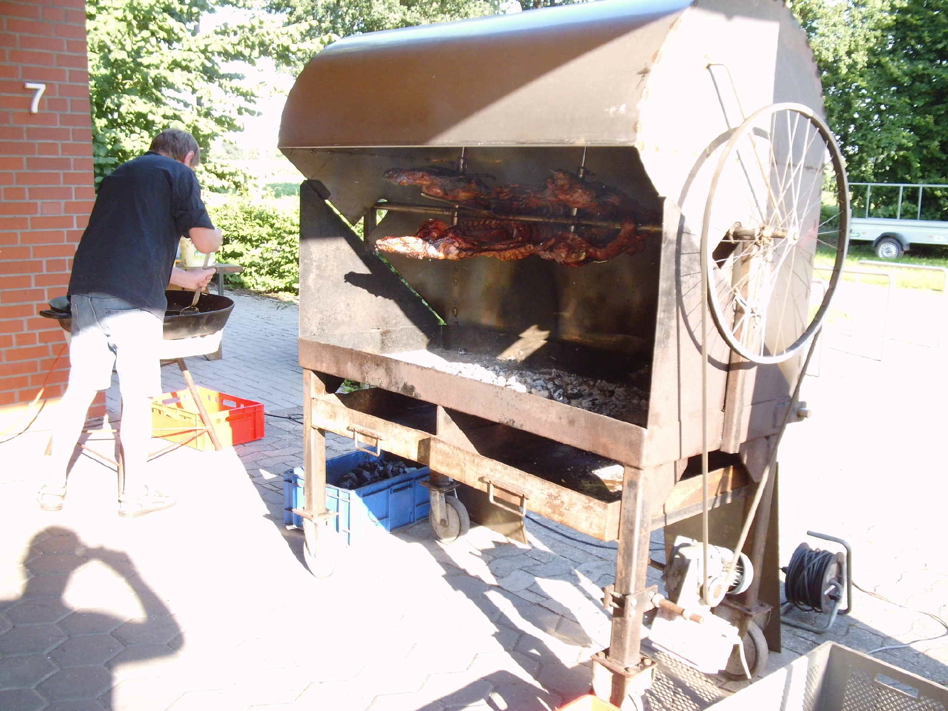 Die abendlichen Highlights waren natürlich immer die Lagerfeuer aber wir hatten den einen Abend auch noch ein Schwein im Grill hängen was super geschmeckt hat und auch Hähnchen bis zu abwinken.