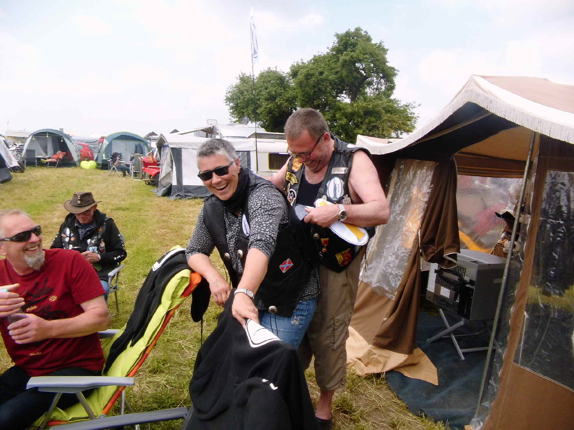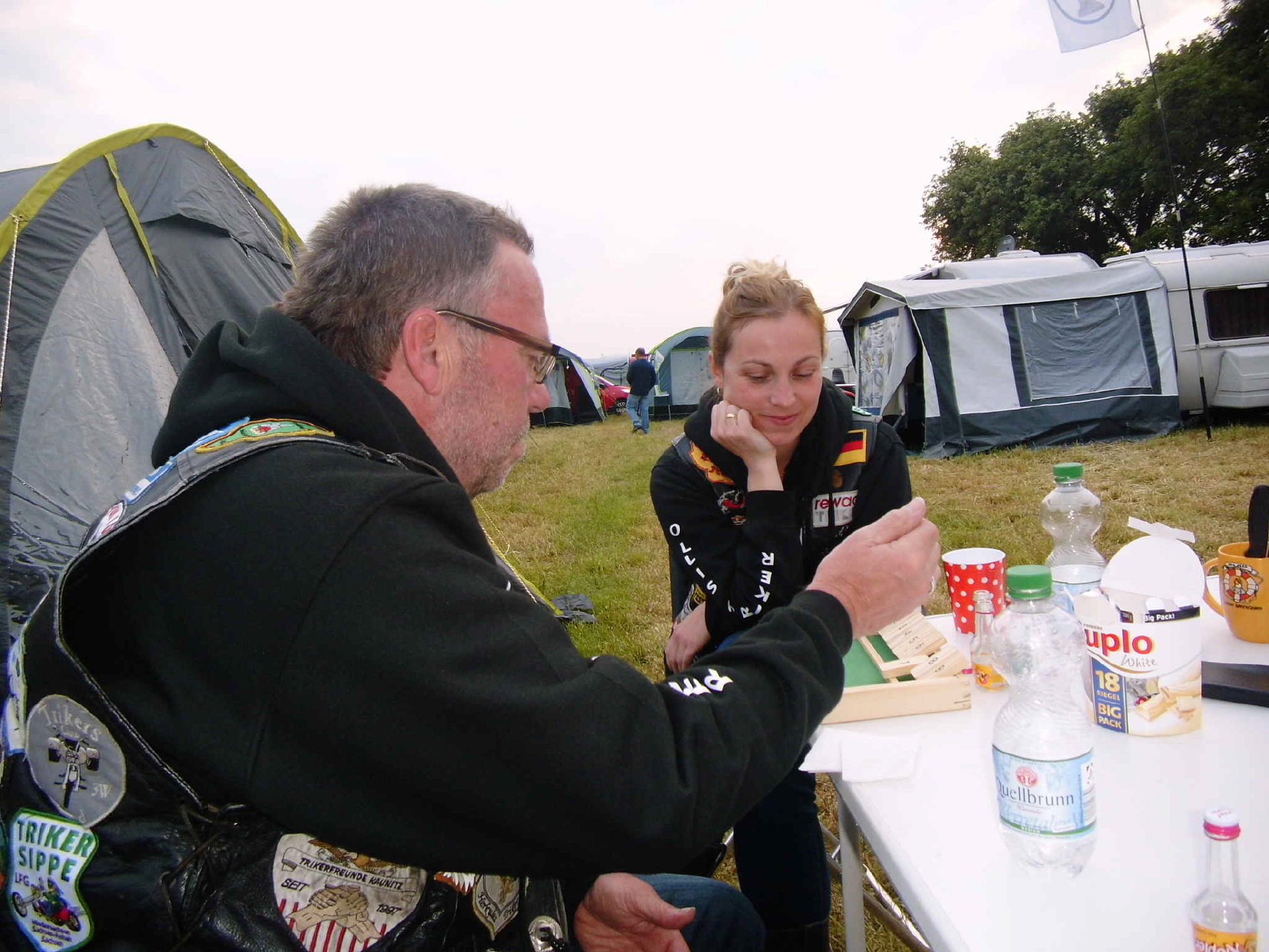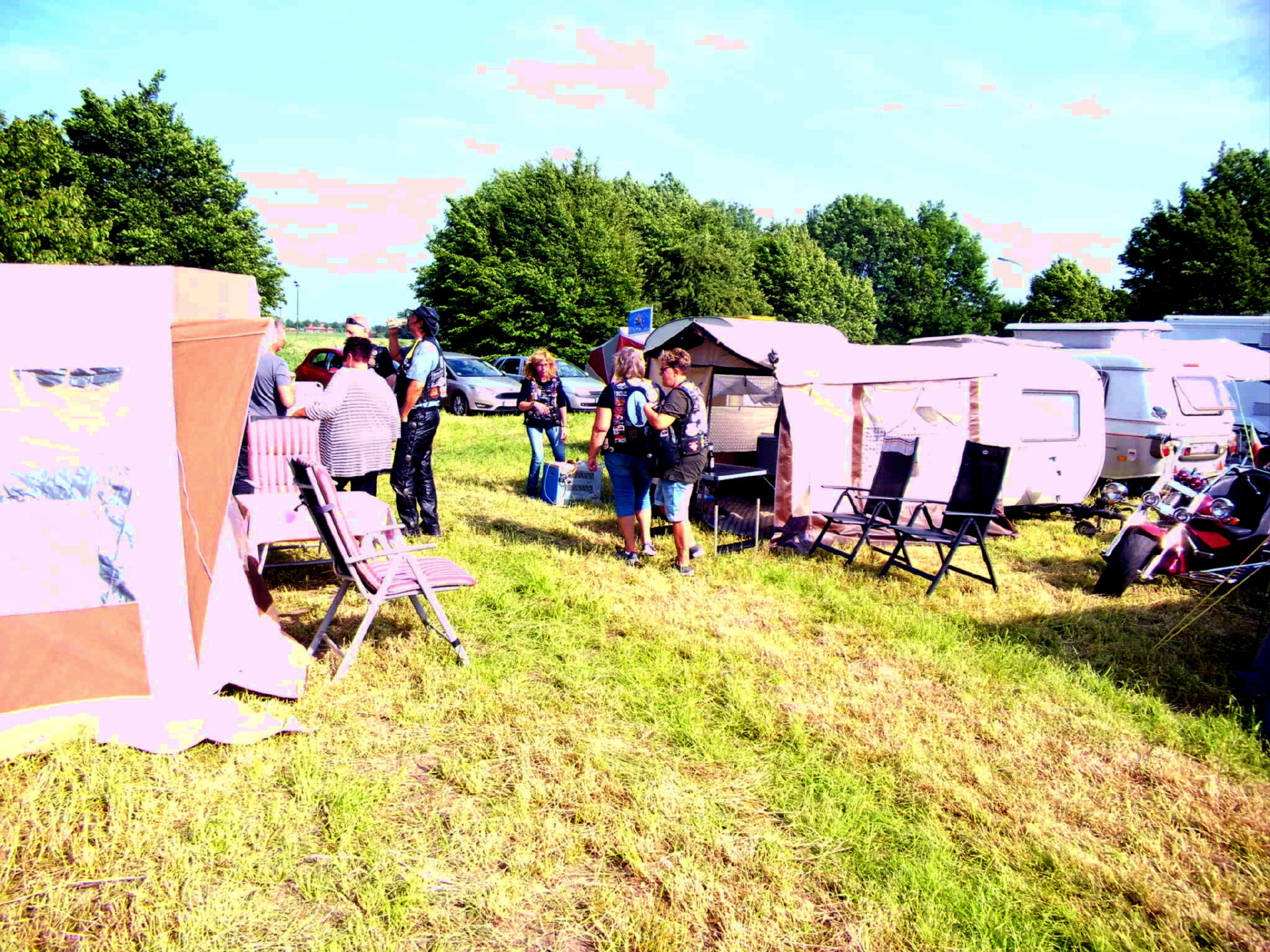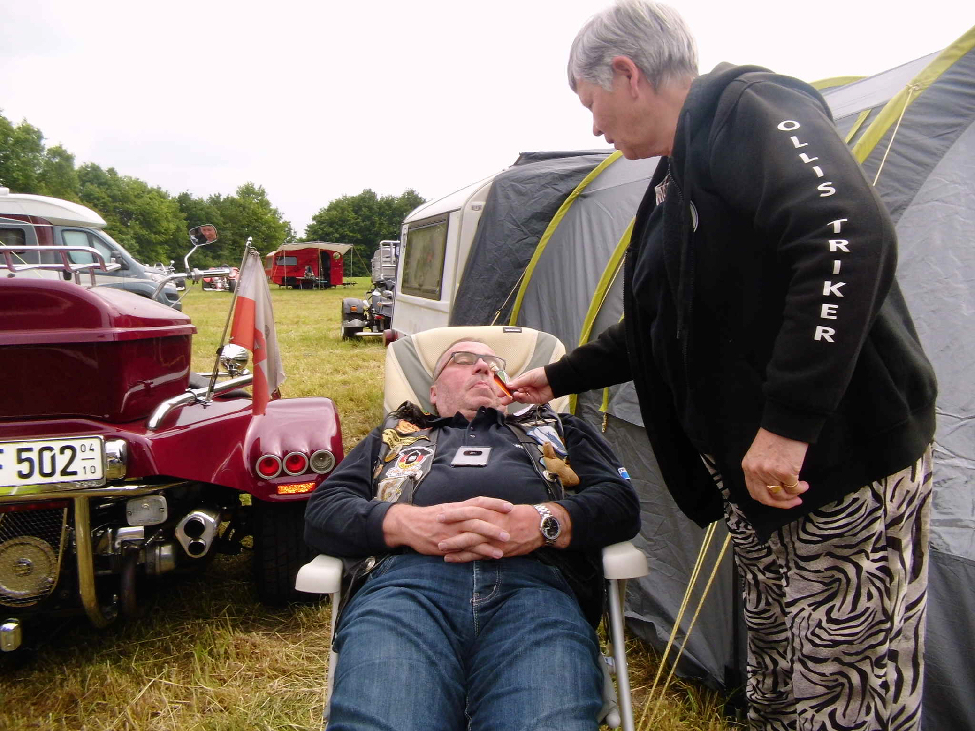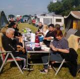 Nach und nach füllte sich der Platz und die Ollis-Triker waren mit 10 Gespannen und 16 TrikerInnen vertreten. Uwe und Regina hatten bei ihrem „1. Schnupper- treffen„ ihr „coming out„ und sind nun vollends infiziert. ;-))